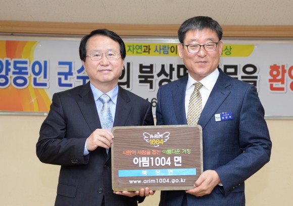 이번에 북상, 웅양면은 각각 2년간 212가구, 316가구가 참여하여 총액 511만원 과 834만원을 기부약정을 체결해 총 마을 수 대비 50%에 해당하는 6개 마을, 12개 마을이 천사마을로 지정되었다. 현재 거창군은 지난 3월에 지정된 주상면을 포함해 총 3개면이 아림1004 천사면으로 지정되어 있다. 양동인 거창군수는 인사말을 통해 “이웃사랑의 마음으로 정성을 모아준 면민에게 감사드리고, 사랑이 필요한 주위에 보호를 받지 못하고 있는 어려운 이웃들을 발 빠르게 발굴해, 면민들의 따듯한 사랑이 전해질 수 있도록 하겠다”고 전했다.
