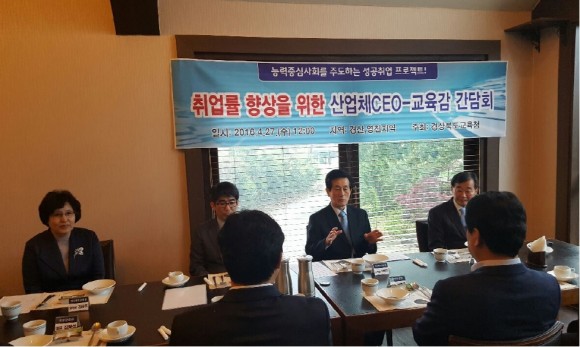 |  | | | ⓒ (주)영남도민일보 | | [영남도민일보] 권기한 기자 = 경상북도교육청(교육감 이영우)은 특성화고 성공취업 프로젝트추진을 위하여 2016년 4월 27일(수) 경산․영천지역에서 산업체 대표와 대구경북지방중소기업청장 및 경산상공회의소 회장과 간담회를 개최하였다.