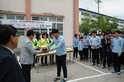 이에 앞서 대영중학교 한빛사랑 학부모회는 하루 전날 전교생 학생들을 위해 달달한 제과들을 예쁘게 포장하고 학생들이 파이팅 할 수 있도록 위로의 글로 “오늘 아침도 활짝 웃자”, “엄마는 널 믿어~ 사랑 한데이”, “항상 응원할게” “넌 할 수 있어”, “조금만 더 힘을 내렴”, “혼자라고 생각말기”, “힘들어도 울지 않기” 등 다양한 위로의 문구 스티커를 만들어 붙이고 이른 아침 등교하는 학생들을 위해 나눔 행사를 함께 펼쳤다.