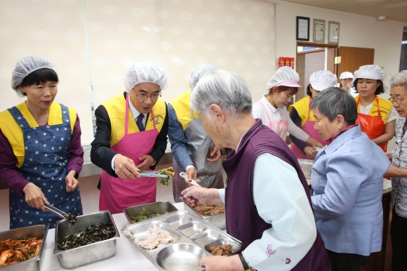 창원성심원에는 120여 명의 어르신들이 생활하고 있으며 이날 배식봉사에는 박종훈 교육감도 참여했으며 거동이 불편한 어르신들에게 일부 봉사활동자들은 식사보조를 했다.