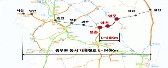 중부권 동·서 내륙철도 경북구간인