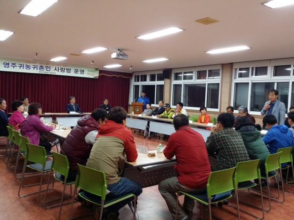 |  | | | ⓒ (주)영남도민일보 | | [영남도민일보] 김창기 기자 = 영주시는 귀농귀촌인이 도시로 재이주하는 역귀농을 예방하고 안정적인 정착을 위하여 매월 격주 목요일 귀농귀촌인 사랑방을 운영하고있으며 지난 26일(목)에는 봉현면사무소 2층 회의실에서 귀농귀촌인 사랑방 모임을 운영했다. 귀농귀촌인 사랑방 모임에서는 새로운 귀농정책소개, 영농시기별 기술정보제공, 지역민과의 소통과 화합으로 갈등해소, 정보교환, 건의사항 등을 주요내용으로 운영된다.