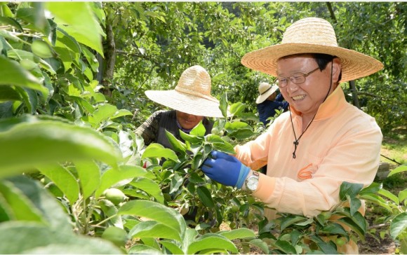 이번 농촌 일손돕기는 거창읍 정장리, 주상면 거기리 등 2개면 5농가의 과원(2ha)에서 이루어 졌으며, 군청 및 산하직원 100여명이 참여해 포도 순치기, 사과 열매솎기 및 잔나무 정리 작업을 진행했다.