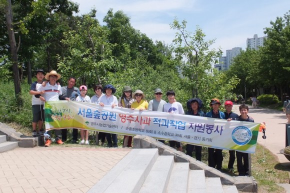 이에 순흥초등학교(69회)와 소수중학교(30회) 서울․경기 동기회(회장 한진수)』회원 20여명이 참석하여 작년에 이어 올해 2년째 서울숲 영주사과 적과(열매솎기) 자원봉사를 실시하여 주위에 미담이 되고 있다.
