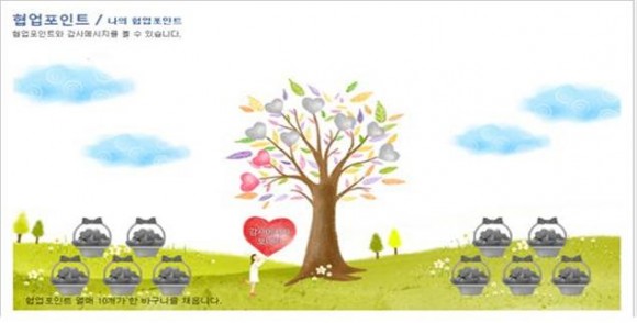 ‘협업포인트’는 타 기관 및 기관 내 다른 부서의 공무원과 업무 협조나 지식 및 정보를 공유하는 등 협업을 한 경우, 도움을 준 공무원 개인 간 온․나라-e음으로 주고받는 포인트로 매월 개인별 200포인트의 협업포인트를 배정받아 1회 10포인트를 감사메시지와 함께 보낼 수 있다.