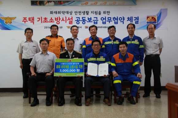 노벨리스코리아 영주공장(공장장 조병기)은 2016년 노벨리스 계열사 내 안전사고 없는 우수공장으로 선정되어, 본사로부터 3백만원의 상금을 받아, 지역사회 화재예방을 위해 상금전액을 주택용기초소방시설을 구입하여 영주소방서에 지원하기로 하였다.