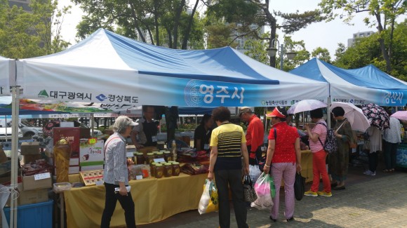 |  | | | ⓒ (주)영남도민일보 | | [영남도민일보] 김창기 기자 = 영주시(장욱현)는 9일부터 10일까지 2일간 대구 수성구청 광장에서 열리는 “2016 자매도시 특산물 판매 행사”에 풍기인삼과 풍기인견 이 참가해 큰 호응을 얻었다.