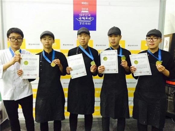 |  | | | ⓒ (주)영남도민일보 | | [영남도민일보] 권기한 기자 = 영주제일고등학교(교장 임원수) 3학년에 재학 중인 권기웅, 우정원, 김동혁 군이 지난 5월 19일부터 22일까지 서울시 서초구 AT센터에서 열린 "2016 대한민국 국제요리(제과)경연대회"에서 영예의 금상을 수상했다. 영주제일고등학교의 요리 부문 대회의 실적은 작년 김영현 군의 “2015 음식 디미방 청소년 요리경연대회” 대상에 이은 쾌거이다.
