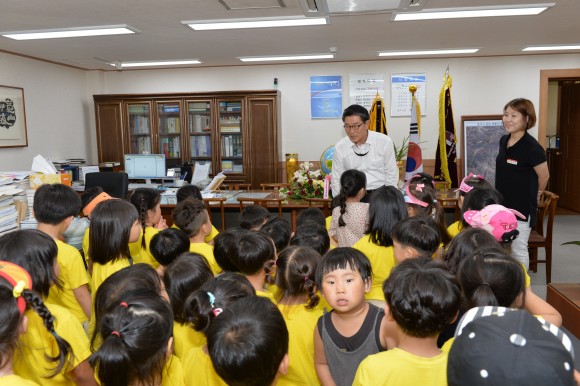 친구들과 함께 시청에 들어서서 민원실, 주민자치과, 사회복지과, 세무과, 각 과에서 하는 일에 대해 설명을 듣고 궁금한 것에 대해 질문하는 시간을 가졌다. 특히, 시장님 집무실에 들러서는 “시장님 할아버지다.”하며 이야기도 나누고 시장님은 아이들과 시선을 맞추고 안아주며 아이들의 질문에 일일이 대답을 해주셨다.