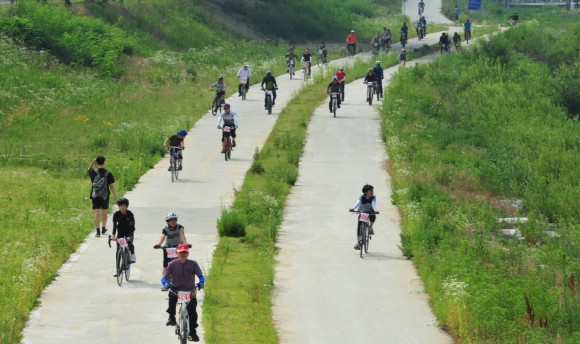 서천변을 따라 자전거 물결