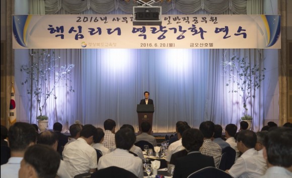 |  | | | ⓒ (주)영남도민일보 | | [영남도민일보] 권기한 기자 = 경북교육청(교육감 이영우)에서는 6월 20일(월) 구미 호텔금오산에서 “2016년 사무관 이상 일반직공무원 핵심리더 역량강화 연수”를 실시했다.