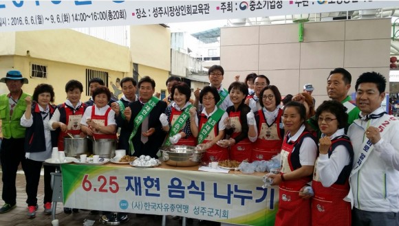 |  | | | ⓒ (주)영남도민일보 | | [영남도민일보] 홍인환 기자 = 한국자유총연맹 성주군지회 여성회(회장 나숙자)는 6월 22일 성주전통시장 내 쉼터에서 “6·25 전쟁 음식 재현 시식” 행사를 가졌다.