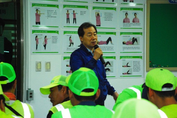 이날 박의식 부시장은 환경관리원들과 조찬을 가지며, 열악한 환경에서도 깨끗한 도시 이미지를 위해 묵묵히 근무하는 환경관리원들의 노고를 격려하고 애로 및 건의사항을 청취했다.