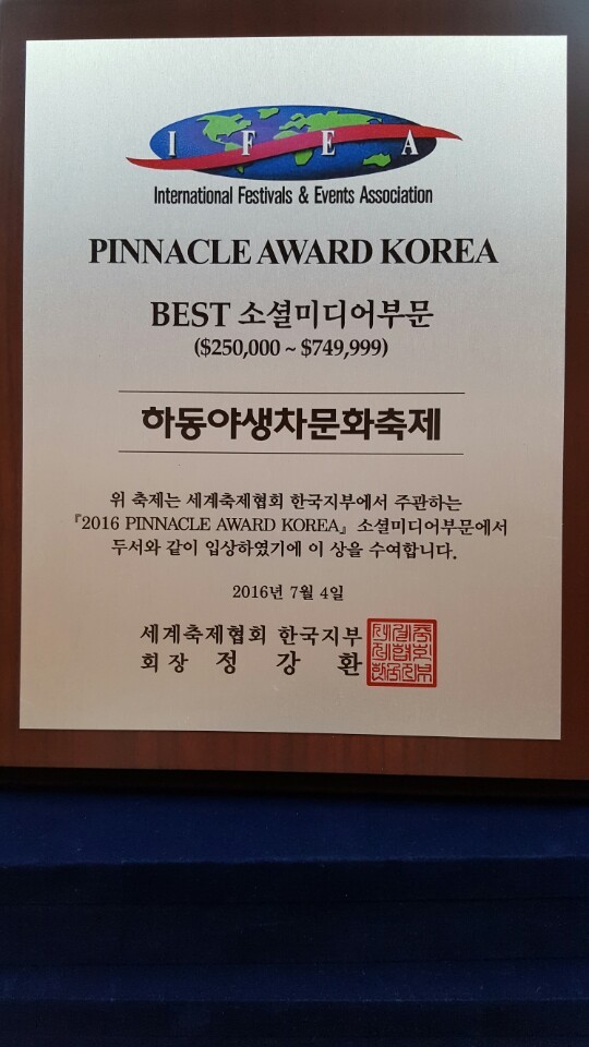 하동야생차문화축제, 피너클어워드 수상
