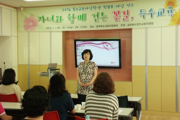 경상북도영주교육지원청 교육장 이성호는 이번 학부모 연수를 통해 학부모들이 특수교육대상학생에 대한 정확하고 바른 지식과 자신감을 가지고 특수교육대상학생의 양육과 교육에 도움이 되기를 바란다 당부하였다.