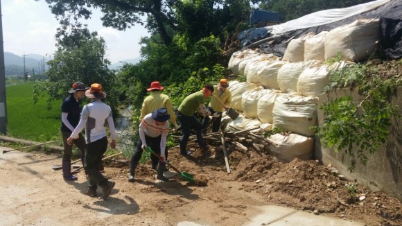 농암면사무소 직원들, 지난 7. 3 ∼ 7. 4 집중호우 피해지역 응급복구작업에 나서