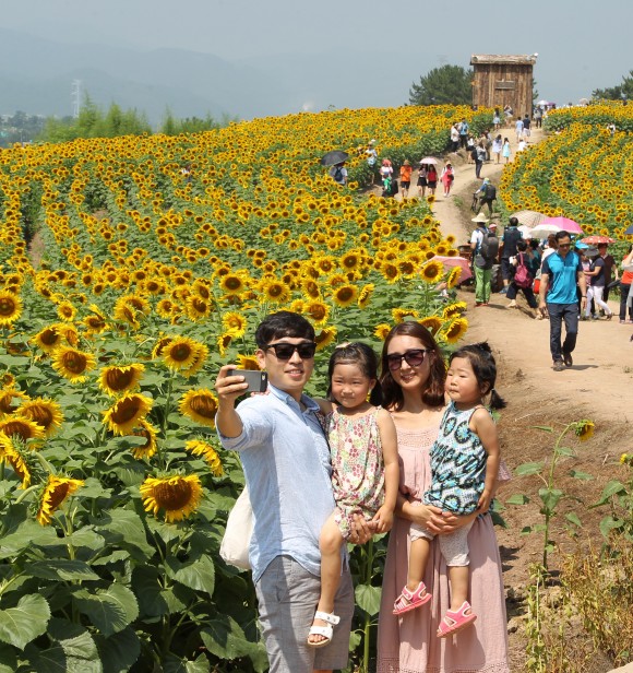 강주 해바라기축제, 불볕더위에도 주말 인파 ‘북적’