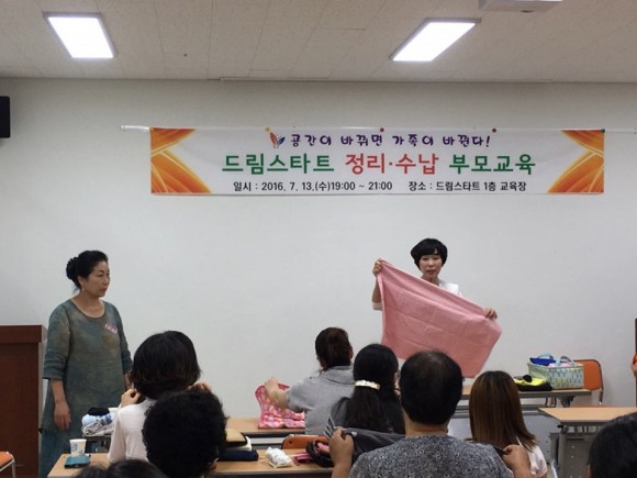 드림스타트 관계자는 “이번 교육으로 부모들에게 정리수납의 필요성을 인식시키고, 깨끗한 가정환경을 조성해 아동의 정서적 안정 등 긍정적인 변화와 부모와 자녀의 삶의 질 향상에 도움이 됐길 바란다”고 말했다.