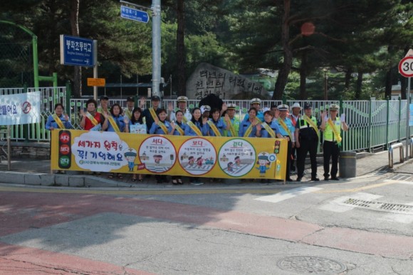 특히, 등교하는 학생들을 대상으로 교통안전 신호 스케치북 배부하고횡단보도 건널 때 “서다, 보다, 걷다”의 보행 3원칙을 플랜카드로 제작, 재미있게 구성하여 학생들이 쉽게 이해할 수 있도록 홍보하여, 학생에게 큰 호응을 얻었다.