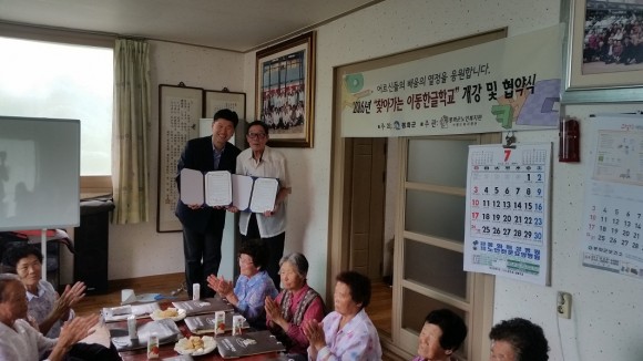 -재산면 갈산1리 경로당 『찾아가는 이동한글학교』 개강 및 협약식 가져-