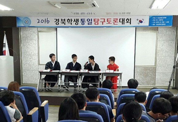 |  | | | ⓒ (주)영남도민일보 | | [영남도민일보] 권기한 기자 = 경상북도교육청(교육감 이영우)은 8월 2일 중학교 학생통일탐구토론대회를 경산과학고 소강당에서 개최하였다. 8월 4일은 고등학교 학생통일탐구토론대회를 개최할 예정이며 중·고 최우수팀은 전국대회에 출전할 예정이다.