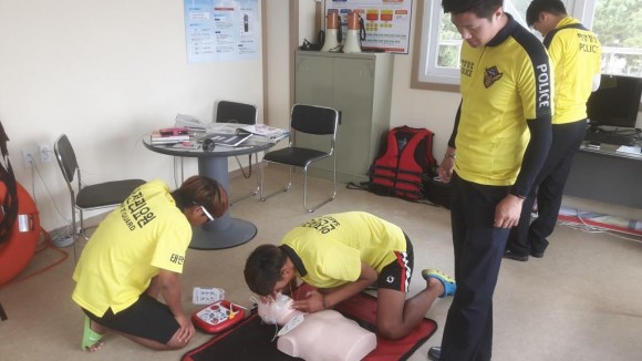 이번 교육은 태안해경 구조와 구급전문요원 8명으로 구성된 안전지원반을 운영 해수욕장 안전관리 노하우를 전수 하여 구조 능력을 향상에 도움을 주어 지자체 중심 안전관리 체계가 정착 될 수 있도록 한다는 취지라 전했다.