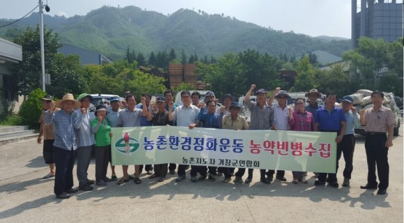 |  | | | ⓒ (주)영남도민일보 | | [영남도민일보] 김병한 기자 = 농촌지도자 거창군연합회(회장 양주용)는 지난 10일, 한국환경공단 거창지사에서 군과 12개 읍면 회원들이 올해 상반기 녹색농촌 환경정화활동으로 모은 농약빈병과 농약봉지 4.5톤을 정리했다.