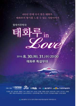 ‘태화루 in Love' 는 밀양 영남루, 진주 촉석루와 함께 영남 3대 누각으로 꼽혔던 태화루가 임진왜란 때 소실된 이후 400년 만에 복원되어 시민들의 품으로 돌아온 것을 기념하여 과거 태화루에서 시작된 두 남녀의 운명적인 사랑 이야기를 노래와 춤, 마술 등 다양한 퍼포먼스로 펼치면서 태화루의 아름다움을 표현한다.