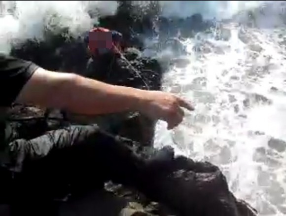 수영하다 높은 파도에 휩쓸려 간출암에 올라간 익수자 구조