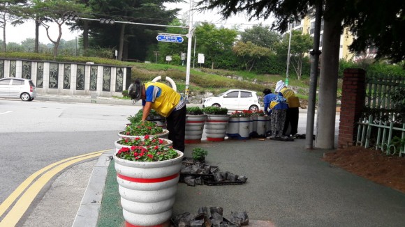 이날 사계절 꽃이 피는 거리 조성을 위해 여름에 심었던 시든 꽃을 대신해 메리골드, 패츄니아 등 가을꽃 5,000여 본을 차량 통행이 많은 수출대로 3길, 비산로와 산업단지 및 아파트 주변 도로 등 130여개의 가로화분과 화단에 식재하고, 추석명절을 맞이하여 귀향객과 주민들에게 화려한 가을꽃의 정취를 제공하여 보는 이의 마음을 아름답고 밝게 만들었다.