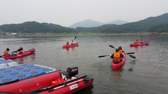 오후에는 국립낙동강 생물자원관을 견학하였고, 이어서 상주시에서 지난 8월에 개장한 「낙단보 수상레저센터」에서 포툰보트, 카약, 바나나보트 등 내륙에서 경험 할 수 없었던 다양한 수상레저 프로그램을 체험하였다.