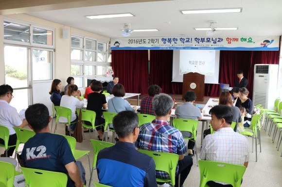 이어서 샘물가정상담센터 박영순소장의 ‘학교폭력 및 아동학대, 성폭력 예방교육’이 진행되었다. 박영순소장은 상담 사례를 중심으로 가정에서의 아동과 부모의 효과적인 의사소통의 필요성과 가정 폭력이 사회폭력의 시작점임을 강조하면서 가정에서 학부모들의 역할에 대한 교육을 실시하였다. 또, 자녀들의 올바른 성의식 함양을 위한 부모들의 역할을 강조하면서 성폭력 예방 및 대처법에 대한 강의를 하였으며,‘아이에 대한 이해, 배려, 진솔한 대화, 긍정적인 말’이 학교와 사회에서의 아동 범죄를 예방하는 가장 중요한 요소라는 점을 강조하였다. 이어서 2학기 주요 학사일정 및 방과 후, 돌봄 교실 등 학교의 각 부서별 업무 추진 계획을 안내하고 각 교실에서 담임선생님과의 상담시간을 가졌다.