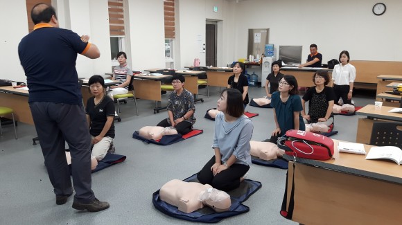 교육은 이론교육 뿐만 아니라 실제 응급상황 발생이 발생했을 경우 대비할 수 있도록 CPR인형(심폐소생술 실습인형)을 이용해 직접 심폐소생술을 실습하는 방식으로 진행된다.