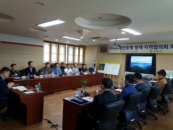 지난 8월에 남유진 구미시장을 위원장으로 구미경찰서장, 구미소방서장, 구미국유림관리소장, 구미시산림조합장 등 유관기관, 단체장 등을 위원으로 하여 “소나무 재선충병 방제 지역협의회”를 구성하였다.