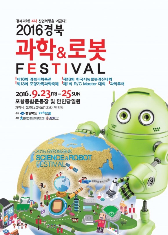 이번 행사는 경상북도와 포항시가 주최하고, 포항시와 한국로봇융합연구원이 주관하며, 특히 올해는 제16회 경북과학축전, 제18회 한국지능로봇경진대회, 제13회 포항가족과학축제, 제1회 R/C Master 대회를 통합해 “경북과학! 4차 산업혁명을 이끈다!”라는 슬로건 아래 ‘2016 경북 과학&로봇 페스티벌 행사로 진행된다.