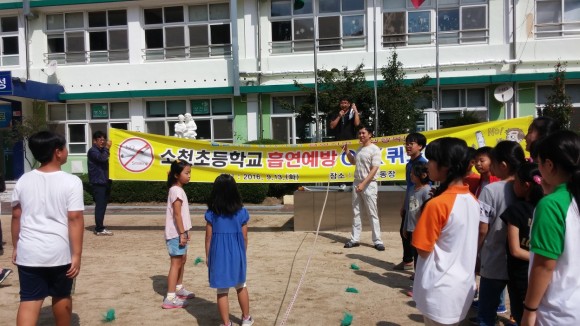 |  | | | ⓒ (주)영남도민일보 | | [영남도민일보] 권기한 기자 = 봉화군 소천초등학교는 2016년 9월 13일 학교흡연예방사업(심화형)의 일환으로 본교와 분교(두음,분천,임기)가 하나되어 선생님, 제자가 함께하는 흡연예방○×퀴즈대회를 실시하였다.