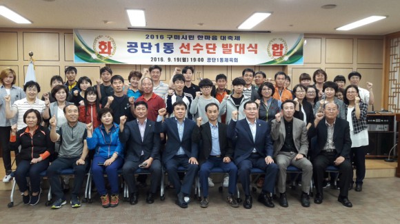 |  | | | ⓒ (주)영남도민일보 | | [영남도민일보] 안충도 기자 = 공단1동(동장 황종영)에서는 2016. 9. 19(월) 19:00 동주민센터 2층 대회의실에서 공단1동체육회(회장 정병춘) 주관으로 회원 및 선수단 60명이 참석한 가운데『2016 구미시민 한마음 대축제』사전준비 회의 및 선수단 발대식을 개최하였다.
