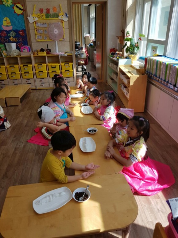 다가오는 추석과 풍요로운 계절 가을을 맞이하여 본원 원아들은 우리의 명절 추석의 유래 및 의미를 알아보고 되새겨보기 위하여 한복입기, 송편 빚기, 한복입고 절하기, 강강수월래, 투호놀이 등 우리 전통문화를 직접 체험해 봄으로써 우리 고유 문화를 즐기고 소중히 여기는 태도를 기를 수 있었다.
