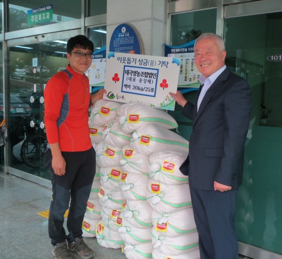 이날 기탁식에는 태극영농조합법인 송상배 대표가 참석해 직원과 함께 올 한해 직접 농사지은 쌀을 기부했으며, 기탁된 쌀은 관내 사회복지시설에 지원될 예정이다.