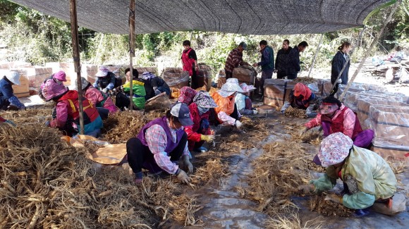 2016 경북영주 풍기인삼축제장 판매용 인삼수확 시작