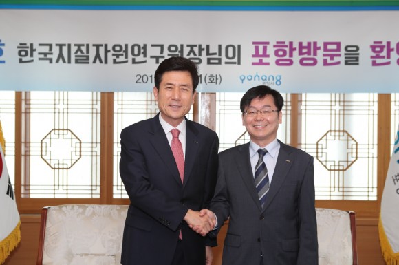 지난 9월 8일 한국지질자원연구원의 원장으로 임명된 신중호 신임원장은 김성필 포항지질자원실증연구센터장과 함께 이강덕 포항시장을 만나 주요 현안사항과 상호발전 방안에 대해 논의했다. 이 자리에서 이강덕 포항시장은 포항지질자원실증연구센터가 포항의 미래 먹거리창출과 환동해 해양탐사의 전진기지로서 중심 역할을 해줄 것을 주문했으며, 최근 동남권의 잦은 지질 발생에 따른 시민들의 불안이 증폭되고 있는 가운데 이를 해소하기 위한 방안으로 지진연구기관의 포항 이전을 건의했다.