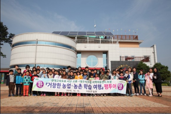 |  | | | ⓒ (주)영남도민일보 | | [영남도민일보] 김병한 기자 = 거창군(군수 양동인)은 10월 15일 광대고속도로 시군 간 관광교류 촉진을 위해 대구 서구청 지역아동센터 80여 명을 초청함으로써, 거창사과테마파크 견학과 사과요리체험, 서변정보화마을 사과 따기 체험 등 거창관광 ‘팸투어’를 시작했다.