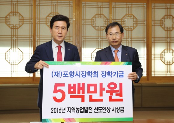 -2016년 지역 농업발전 선도인상 부상 500만원 포항시 장학회에 기탁