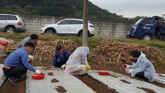 이날 일손돕기는 기관장 정례회의를 들녘에서 실시하면서 농촌의 어려운 현실을 직접체험하고 청취하자는 제안이 있어 이루어지게 되었으며, 배몽희 군의회 복지행정위원장, 김정옥 가회중학교장, 윤병주 가회우체국장 등이 비가 내리는 궂은 날씨임에도 불구하고 동참하여 마늘 1,461㎡를 심었다.