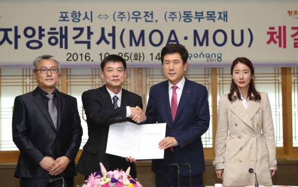 한편 같은 날 ㈜동부목재(대표:박경덕)와 투자투자양해각서(MOU)를 체결했으며 ㈜동부목재는 흥해읍 덕장리에 35억을 투자, 약20명을 고용해 건축용 목재 자재를 생산하게 된다.