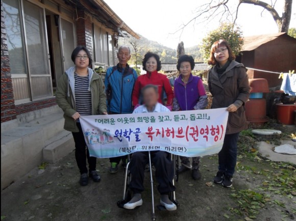 이에 위천면 복지허브담당에서 장애인이 사용하던 수동휠체어를 군에서 지원 받아, 마을이장이 참석한 가운데 권할아버지가 사용할 수 있도록 연계·조치했다.