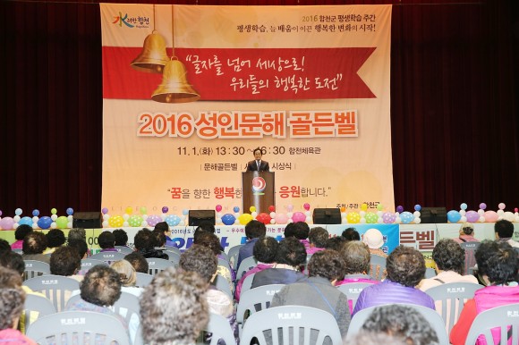|  | | | ⓒ (주)영남도민일보 | | [영남도민일보] 오흥조 기자 = 합천군(군수 하창환)은 1일 합천체육관에서 성인문해교실 ‘은빛학당’ 학습자 500여명을 모시고 『2016 문해골든벨』을 개최했다.