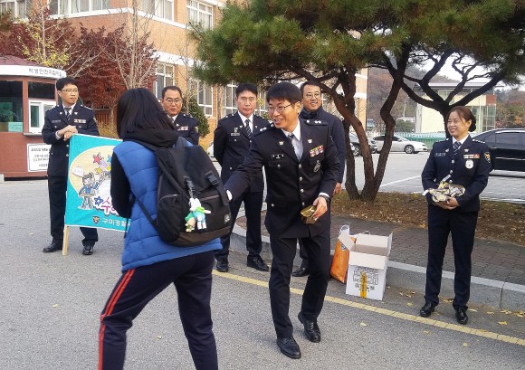 이날 수험생 박모양(19세)은 “수능시험 걱정에 발걸음이 무거웠지만 수험장 입구에서 경찰관들이 선물을 건네어 주며 응원을 받으니 긴장이 완화되네요”라며 추운 날씨에 고생하는 경찰관에게 고마움을 전했다.