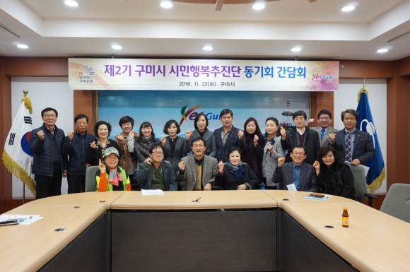 |  | | | ⓒ (주)영남도민일보 | | [영남도민일보] 안충도 기자 = 구미시(시장 남유진)에서는 제2기 구미시 시민행복추진단이 11월 22일(화) 시민행복추진단 동기회 활성화를 위한 간담회를 개최했다. 이번 간담회에서는 2017년도 동기회 활동 방향 수립, 친목 도모, 동기회 운영 등을 재정비 하였다. 또, 제3기 구미시 시민행복추진단 임원진이 간담회에 함께 참여하여 2기의 지난 활동에 대한 경험을 공유하는 시간을 가졌다.