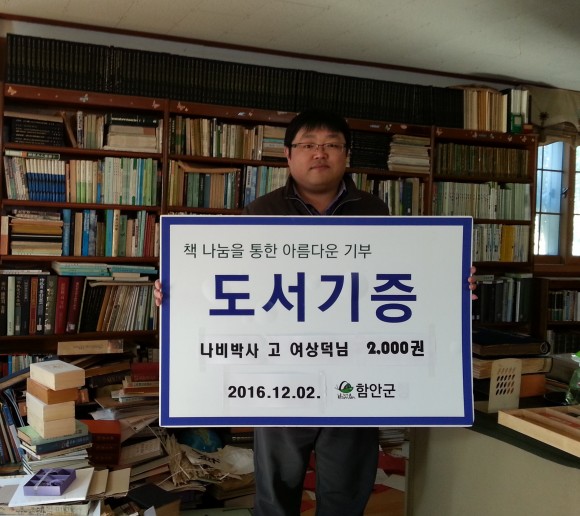 |  | | | ⓒ (주)영남도민일보 | | [영남도민일보] 김진규 기자 = ‘나비박사’로 잘 알려진 고(故) 여상덕 박사의 아들인 동엽 씨가 2일 부친이 소장했던 도서 2000여권을 함안군에 기증했다고 군이 밝혔다.